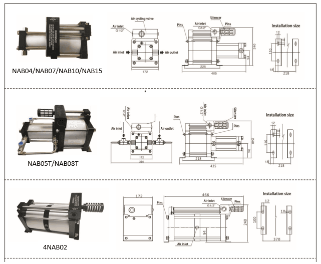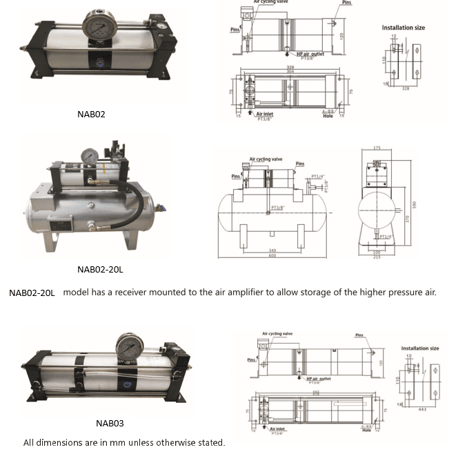 | NAB03 | 3:1 | 402 | 1.0 | 24.9 | 3Pa | PT3/8” | 420 @ Pi=7 |